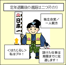 その後は自営業以外の途は考えられません(或いは、志を同じくする自営業同士が集まり組織化する途も含む)。
