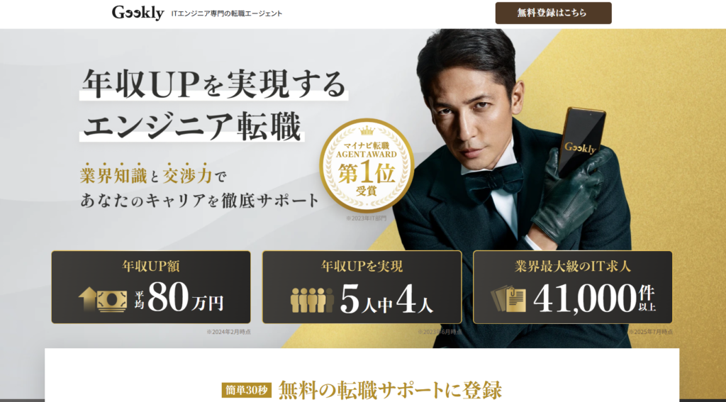 Geekly(ギークリー)は、IT・Web・ゲーム業界に特化した転職エージェントであり、エンジニアやクリエイターなどの経験者向け転職支援に強確認みを持つサービスです。
