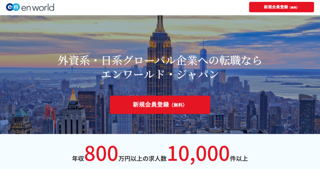 エンワールド・ジャパンは、外資系企業や日系グローバル企業への転職に強みを持ち、年収アップやキャリアアップを狙う人に選ばれやすいサービスです。