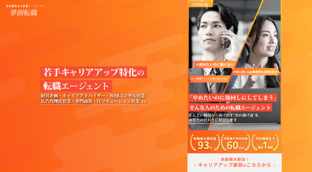 忙しくて転職活動が進められない20代に向けて、「丸投げ型」のサポートを提供している転職エージェントとして注目されているのが夢創転職です。