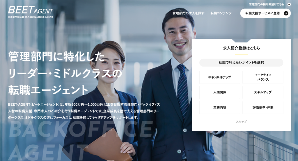 - 管理職・専門職・経営幹部候補の求人が多い