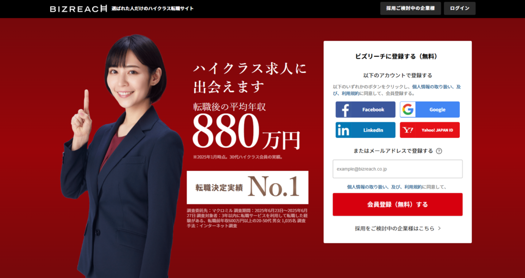まずはビズリーチに無料登録しておくことをおすすめします。
