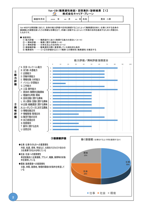 興味評価では、職業に関する興味と日常生活上の志向性という2つの側面で、診断結果が示されています。