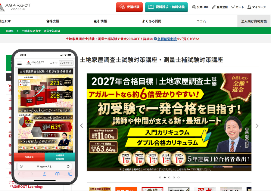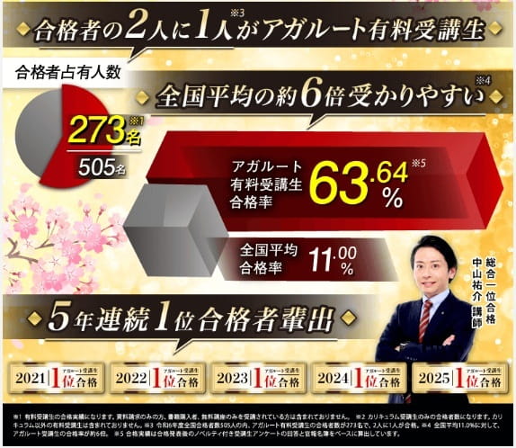 1位:アガルート|合格率63.64%で業界最高水準 & 合格特典で全額返金