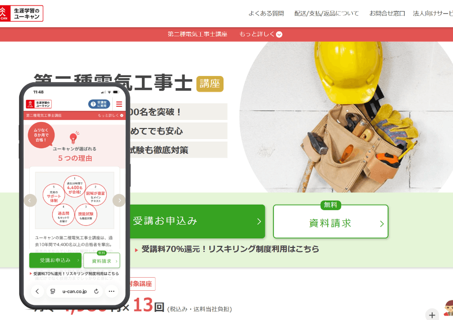 結論から言うと、第二種電気工事士の通信講座で最もおすすめなのは ユーキャン です。