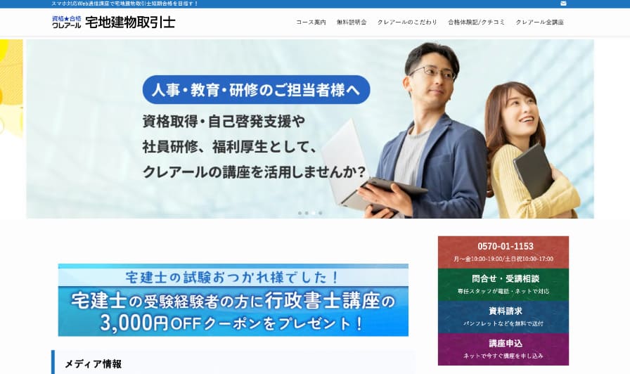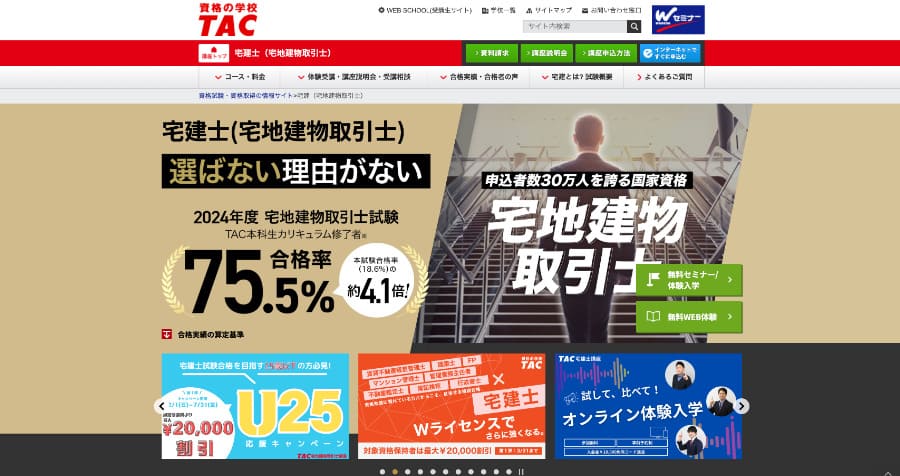 ![]() ![]() 公式サイト | (3.5) | 41,800円~308,000円 | 2,817名合格 (2024年度) | 不動産業界に強い・映像授業の質が高い | 質問対応 / 全国公開模試 |
