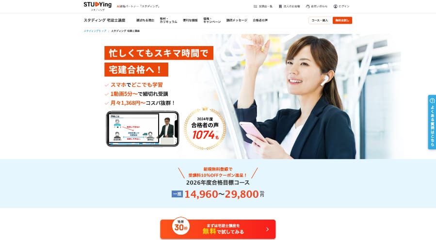 ![]() ![]() 公式サイト | (4.4) | 14,960円~29,800円 | 合格者の声1,074名 (2024年度) | 業界最安水準・スマホ完結・AI学習 | AI学習プラン / 学習レポート |